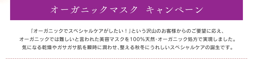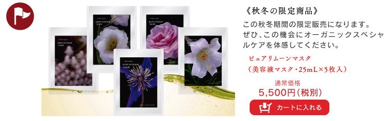 新商品のピュアリシートマスクは、100%天然でオーガニック処方なので安心してお手入れいただけます。